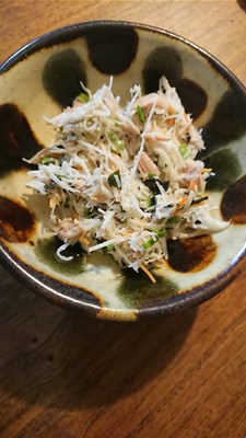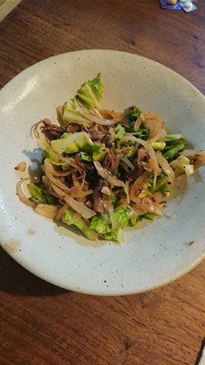 ホタルイカと春キャベツ・新玉ねぎの炒め物です。